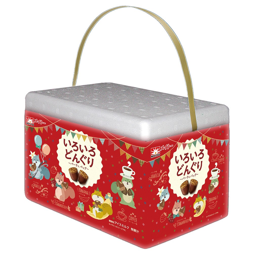 | 原材料 | 【バニラ味】 チョコレートコーチング(アーモンドを含む)(国内製造)、 ピーナッツ、乳製品、砂糖、水あめ、植物油脂、デキストリン/ 乳化剤(大豆由来)、安定剤(増粘多糖類)、香料、着色料 (アカビート、カロチン) 【ストロベリー味】 チョコレートコーチング(アーモンドを含む)(国内製造)、 ピーナッツ、乳製品、砂糖、水あめ、植物油脂、デキストリン/ 乳化剤(大豆由来)、安定剤(増粘多糖類)、着色料(アカビート、 カロチン)、香料、酸味料 【バナナ味】 チョコレートコーチング(アーモンドを含む)(国内製造)、 ピーナッツ、乳製品、砂糖、水あめ、植物油脂、デキストリン/ 乳化剤(大豆由来)、安定剤(増粘多糖類)、香料、着色料 (紅花黄、アカビート、カロチン) 【コーヒー味】 チョコレートコーチング(アーモンドを含む)(国内製造)、 ピーナッツ、乳製品、砂糖、水あめ、植物油脂、コーヒーエキス、 デキストリン/乳化剤(大豆由来)、安定剤(増粘多糖類)、 香料、着色料(アカビート、カロチン) |